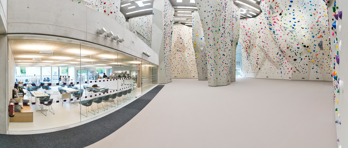 Así, el Kletterzentrum Innsbruck se convierte en un auténtico «Centro de Alto Rendimiento», una instalación pública donde se integra el Centro Nacional de Escalada Austríaco (cuerda, búlder y velocidad), la selección austríaca, además de su parte formativa en cursos de escalada, usuarios diarios, oficinas y almacén.