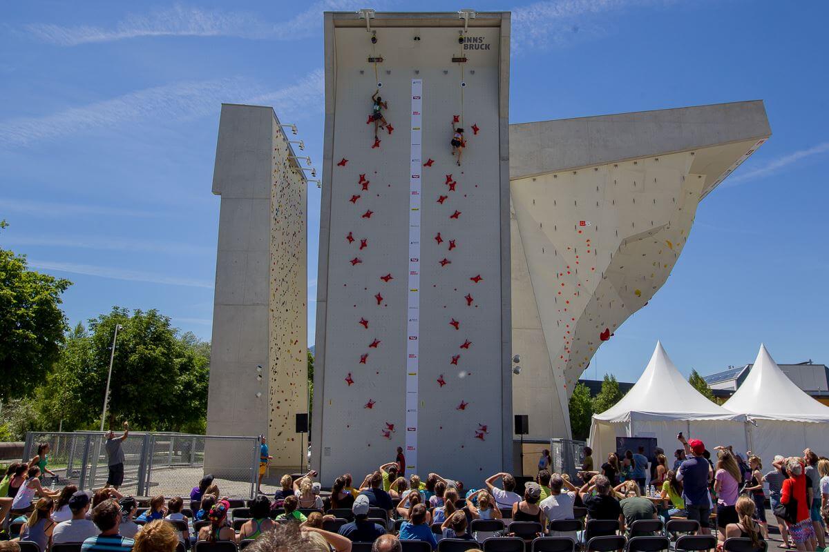 La muestra es el impresionante centro de escalada que se inauguró en Innsbruck el pasado 15 de mayo, Kletterzentrum Innsbruck, el rocódromo más grande de Europa y uno de los más grandes del mundo, que nos deja perplejos en sus dimensiones y cifras: